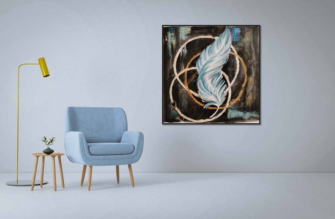 Explore the soft hues of the artwork that fill the space with the quiet grace of air.