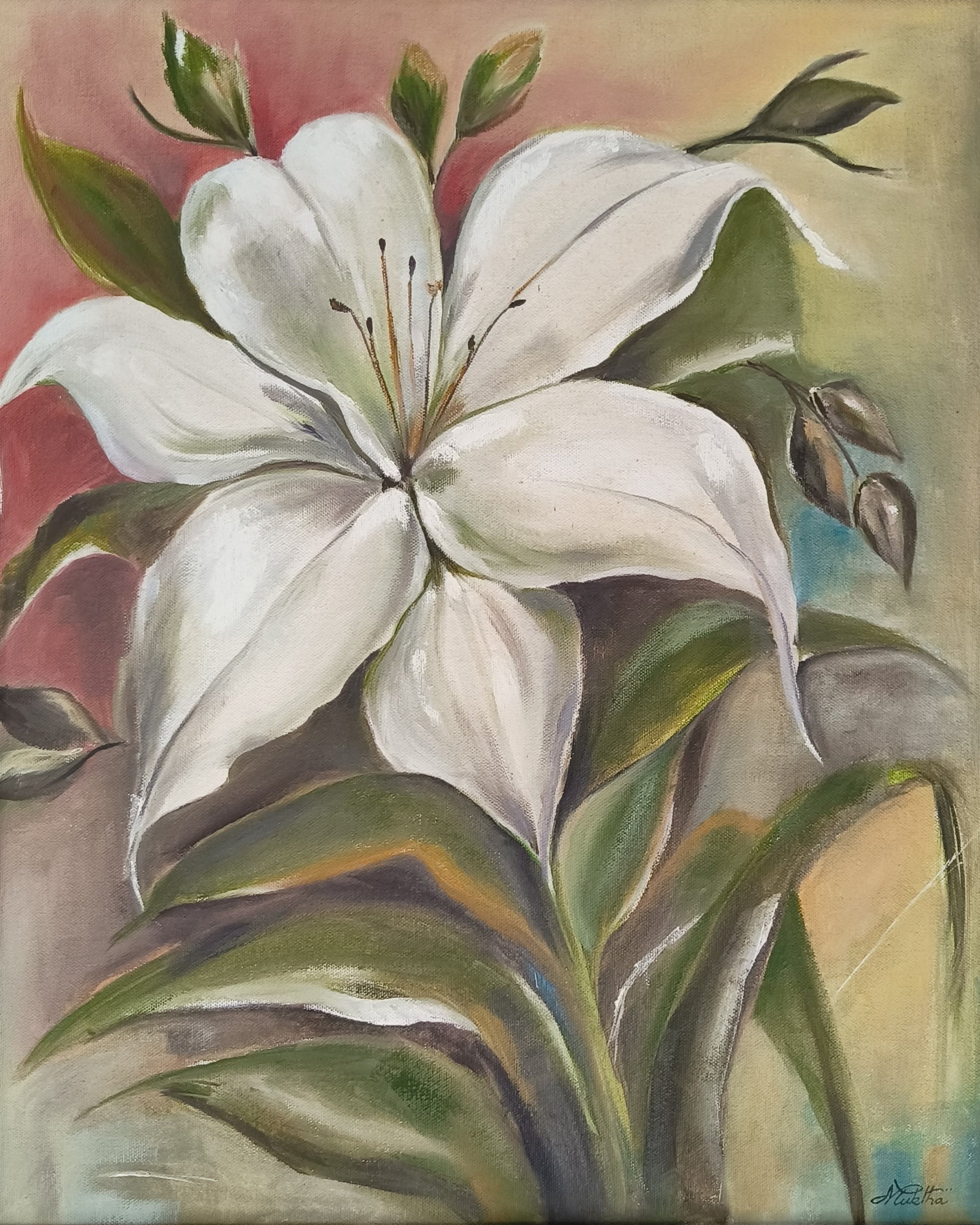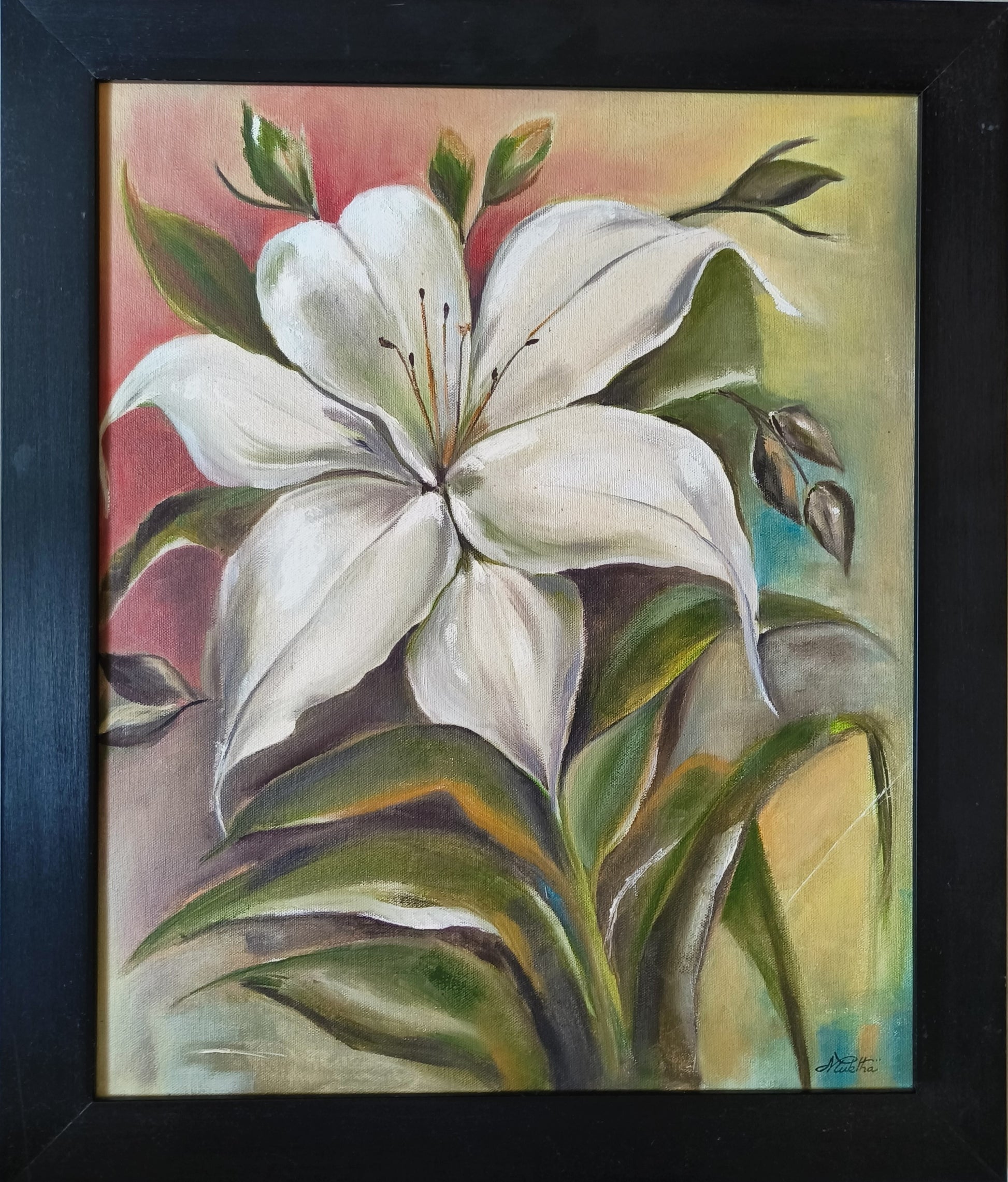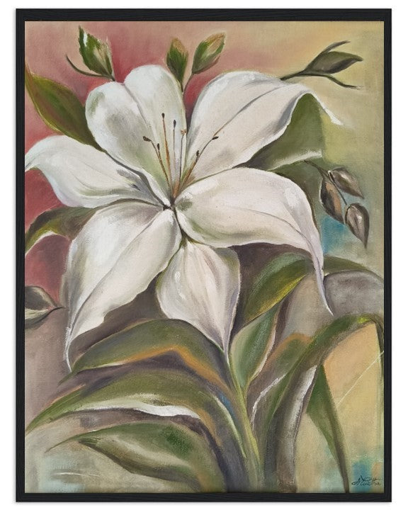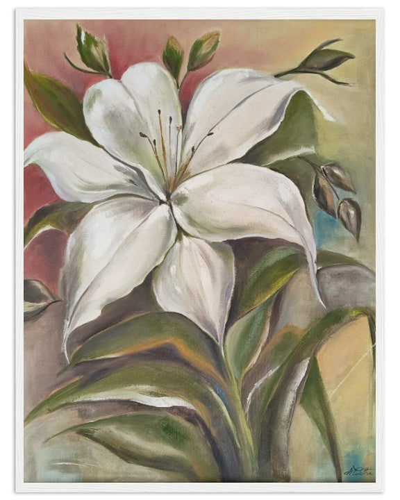 This painting of a single white flower represents purity, simplicity and elegance.