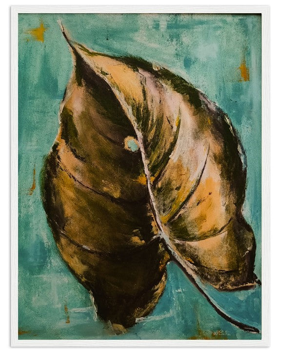 This painting highlights the beauty of the fall leaf - serving as a reminder to savor life's transient treasures.