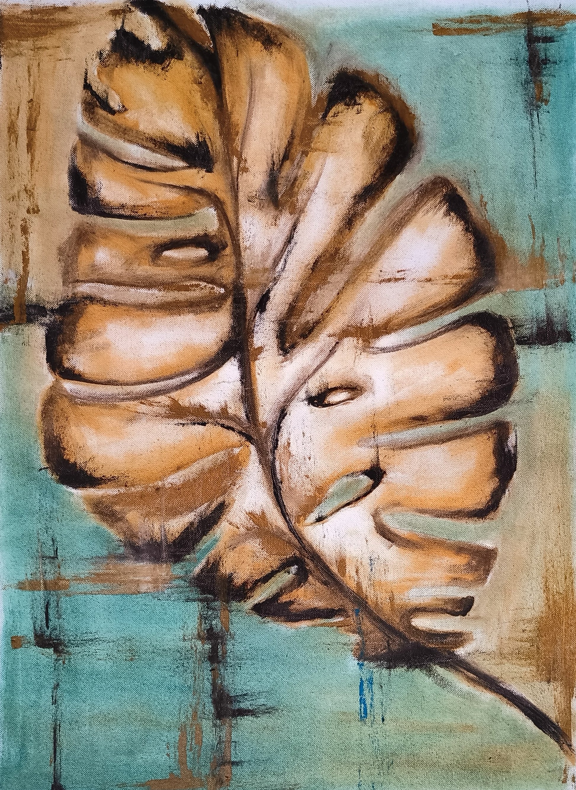 This artwork serves as a unique visual narrative, where the leaf becomes a metaphor for trust, growth, and the unwavering belief that, our journey unfolds with purpose and beauty. 'Leafing in faith' reminds us to embrace faith as a source of strength and resilience.