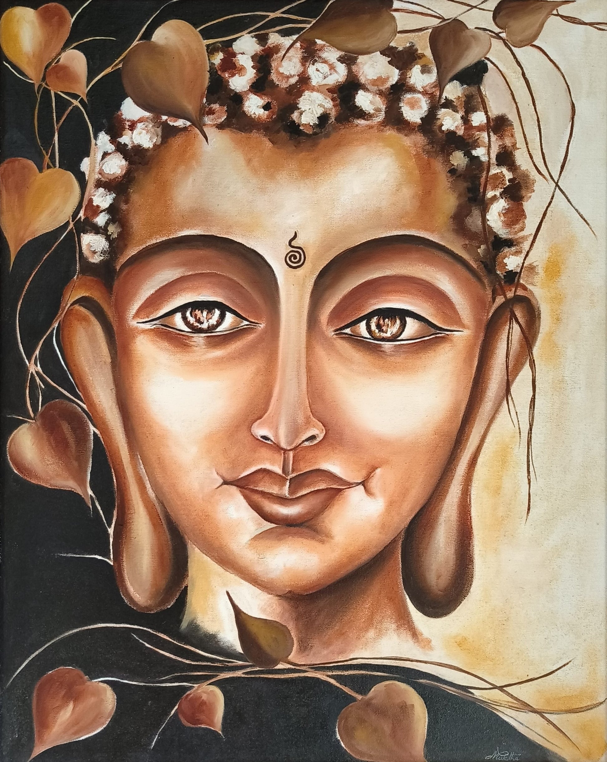 Discover calm and compassion encapsulated in this painting of Buddha. The warm colors in the painting bring forth the profound kindness associated with Buddha's teachings.