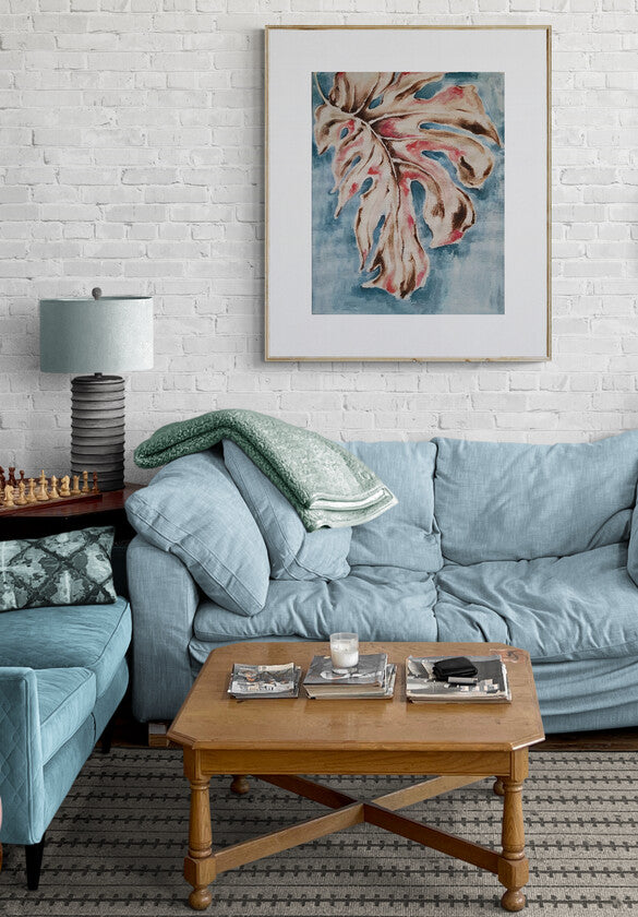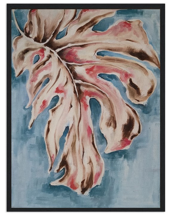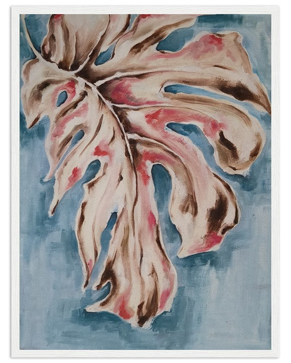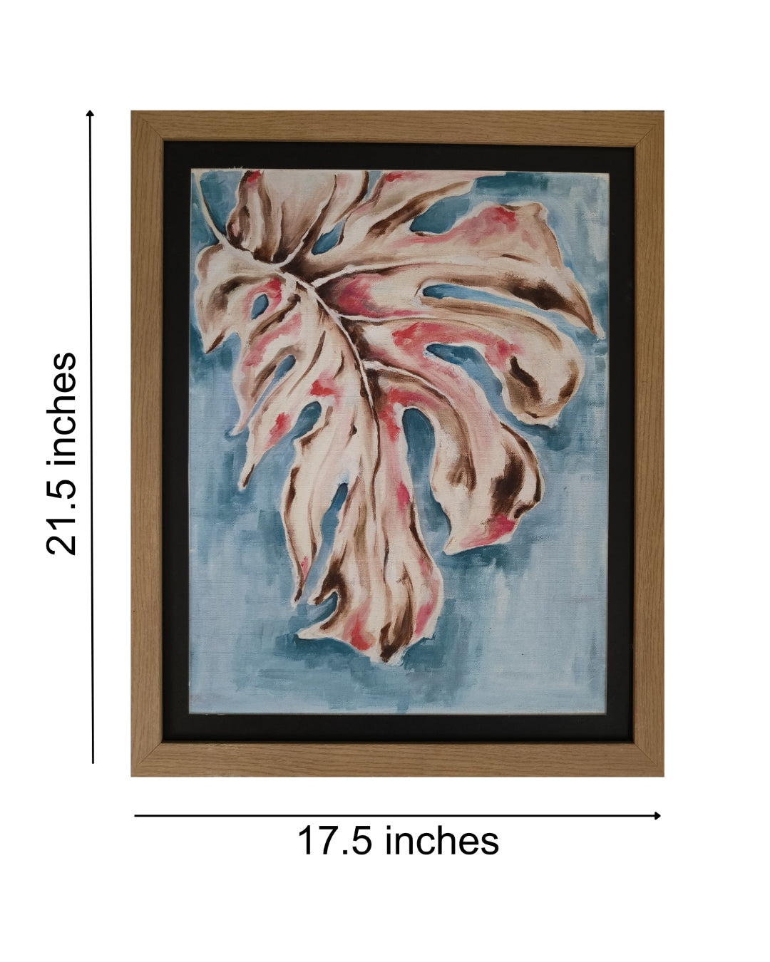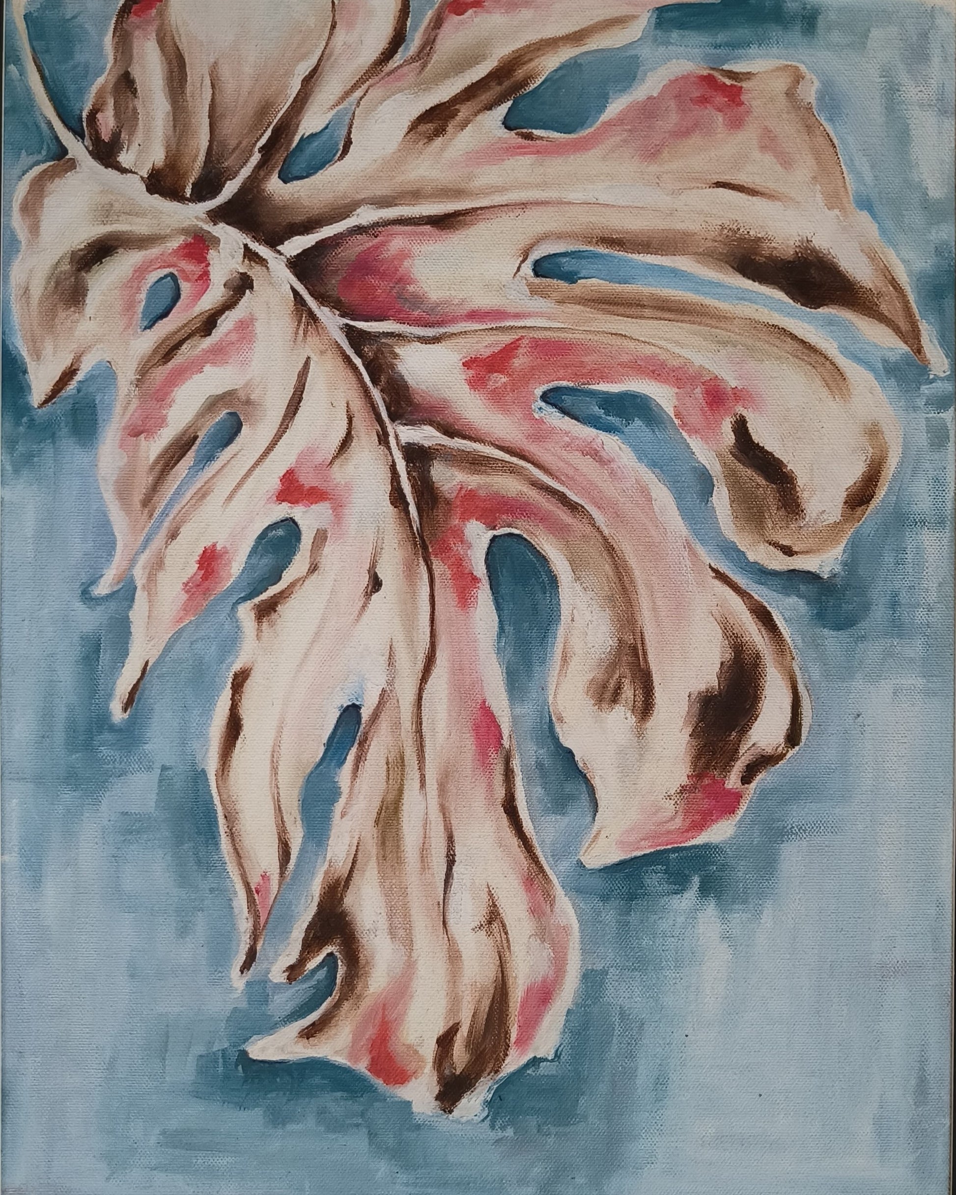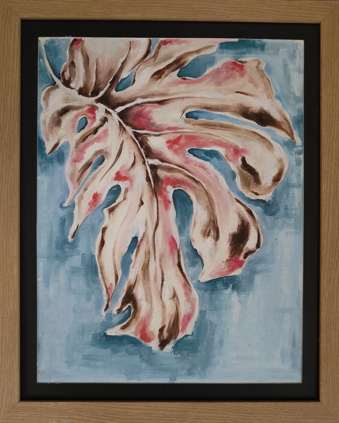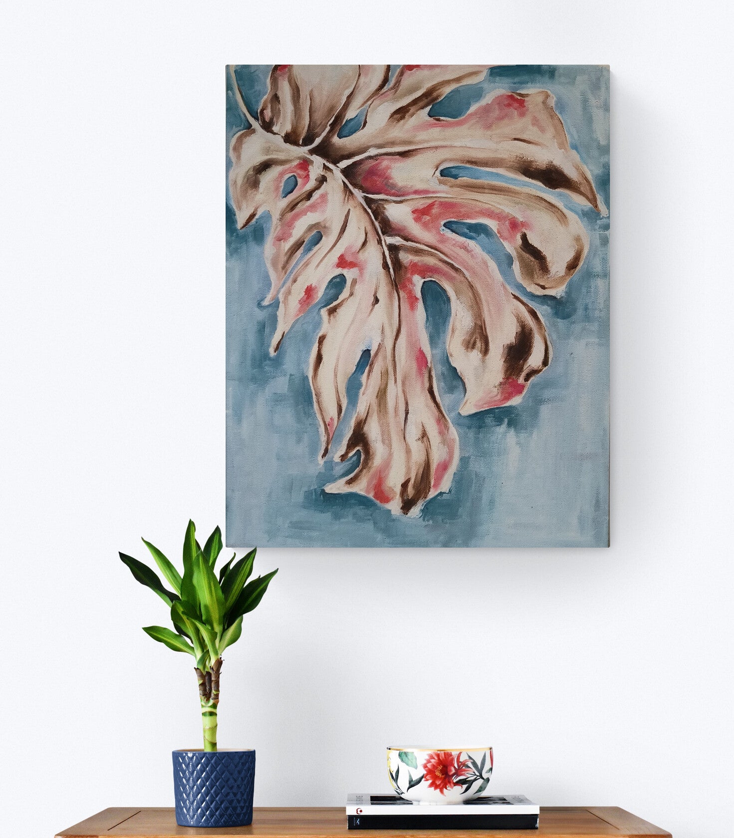 This painting offers an abstract take on the timeless beauty of a palm leaf.